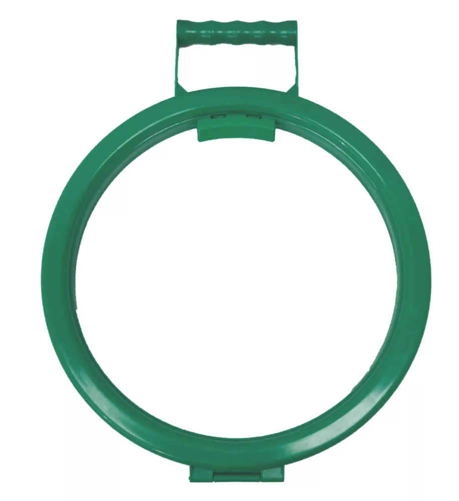 Bin bag hoop for holding bags open when collecting litter or garden waste. Green.