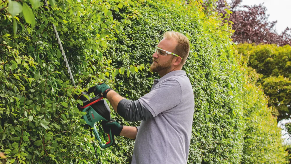 Suitable for tackling large hedge work with quiet ease. Features high performance, energy-efficient motor and ProSilence 93dB sound-dampening shell, to deliver a powerful performance with reduced energy demand, whilst being up to 80% quieter than other Bosch hedgecutters. Laser-cut, diamond-ground blades and high torque slipping clutch enable fast, effortless cutting through thicker branches up to 34mm wide, without damage to the motor. Ideal for trimming conifer, laurel, English yew, beech, holly, hornbeam, leylandii and viburnum hedges.
