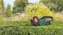 Lightweight and powerful, with brushless motor for extended service life. Ideal for trimming medium-sized hedges such as conifer, privet, laurel and beech with branch thicknesses of up to 20mm. 18V Li-ion battery provides up to 75 minutes of continuous work, without risk of cutting a power cable. Features Swiss precision blades, battery charge indicator and Anti-Blocking System, offering clean, powerful and continuous cuts without frustrating setbacks such as stalling. Part of the Bosch Green Power for All alliance system, where the 18V battery can operate a large variety of tools from different brands.