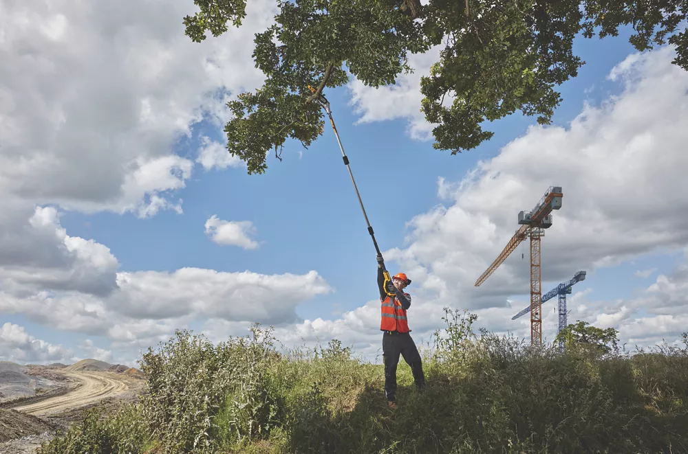Suitable for gardening and landscaping professionals. Ideal for branch pruning/limbing, brush clearing and shrubbing. Metal bucking strips and tree hook for durable cutting grip. The 200mm bar with the low kickback auto-oiling chain provides enhanced safety and a smooth cutting performance. Dual switch reduces the risk of accidentally starting up the machine. 2m pole length is extendable up to 3m giving a total reach of 4.5 metres when held at chest level.