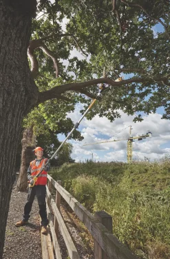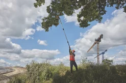 Lightweight aluminum oval tube pole for maneuverability and ease of use. Suitable for gardening and landscaping professionals. Ideal for branch pruning/limbing, brush clearing and shrubbing. The 200mm bar with the low kickback auto-oiling chain provides enhanced safety and a smooth cutting performance. Dual switch reduces the risk of accidentally starting up the machine. 2m pole length is extendable up to 3m for a total reach of 4.5m when held at chest level.