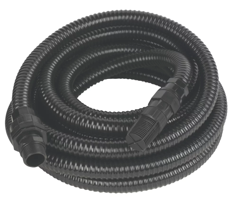 Reinforced, flexible hose. Includes strainer with non-return valve. Suitable for all suction pumps.