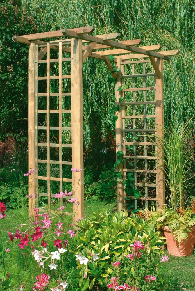 A simple classic arch, featuring trellis sides ideal for climbing plants.