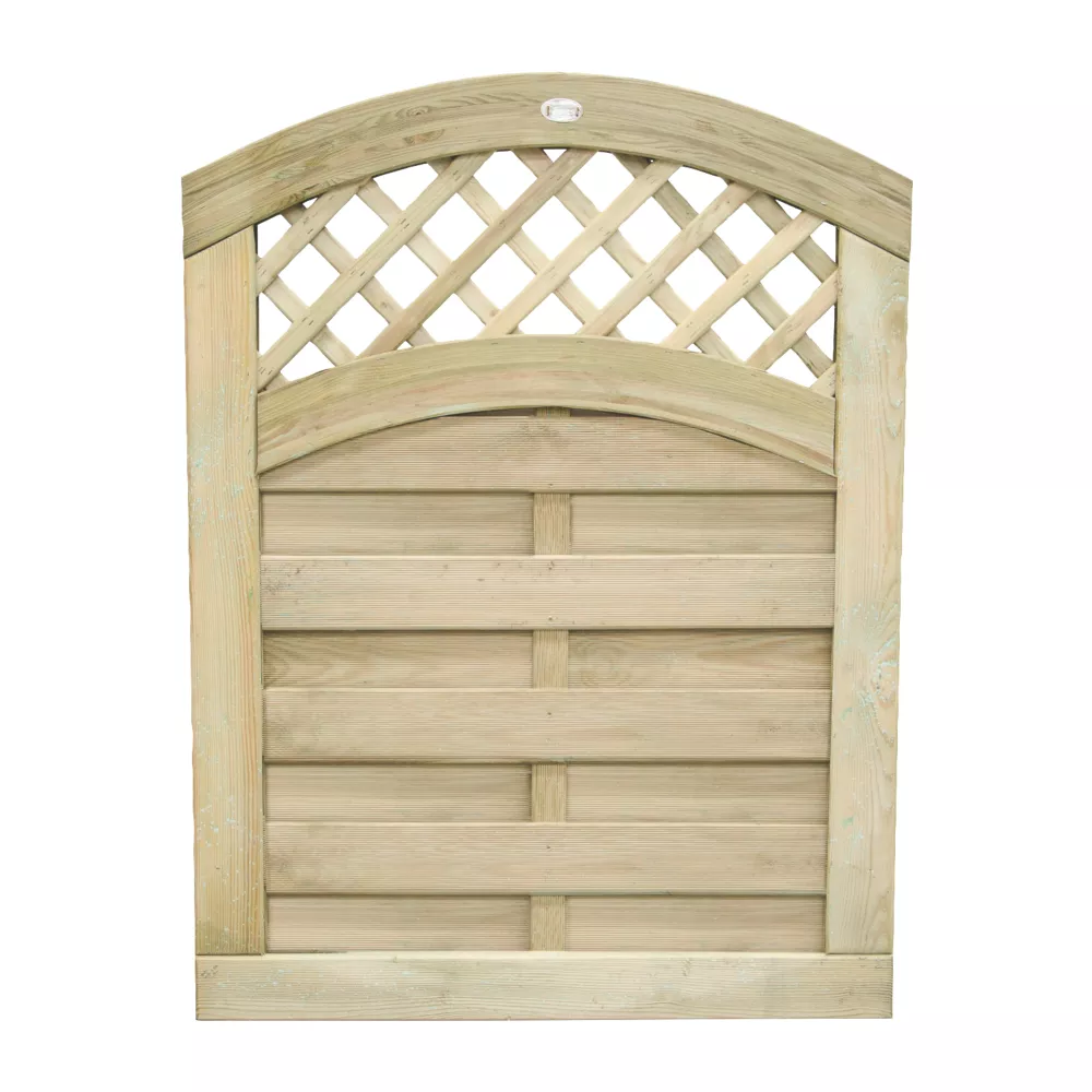 Designed for use with the Europa Prague panel and has a complementary decorative trellis wave design across the top. Manufactured with a mortise and tenon-jointed framework for increased strength and security. The smooth-planed timber gives it a high quality finish that will complete a run of panels.