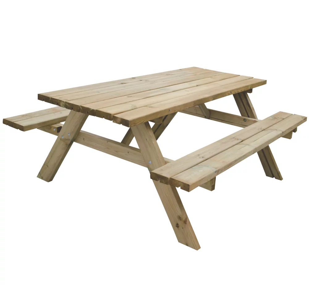 Classic picnic bench design for any garden. Benches will seat up to 8 adults. Manufactured from pressure-treated timber that has been smooth-planed for a splinter-free finish.
