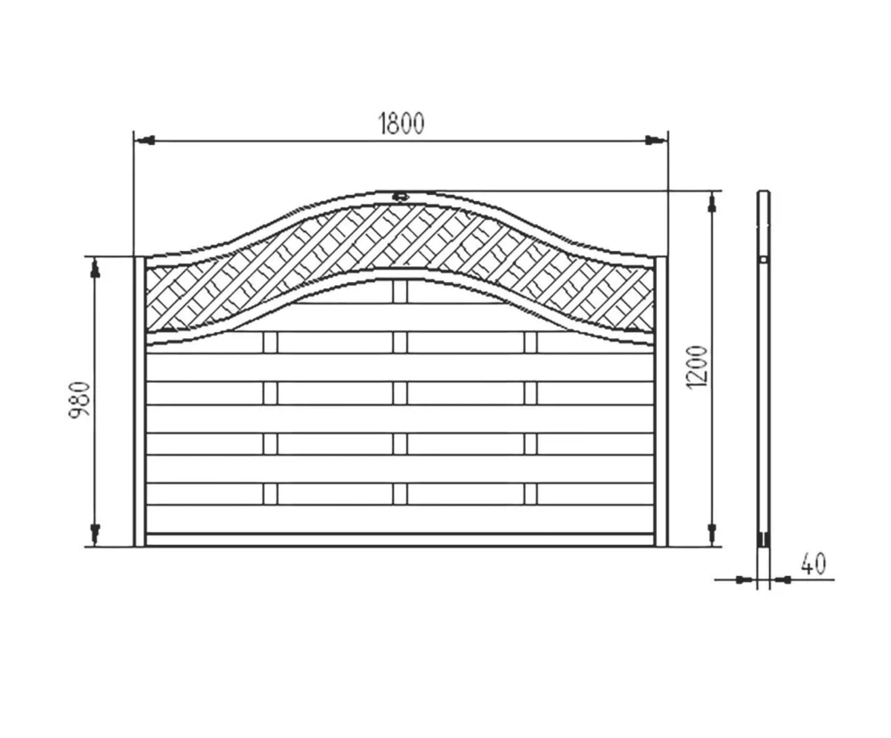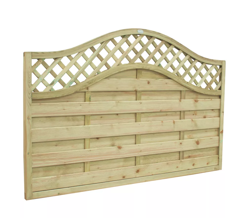 Softwood. Stylish and decorative fence panels with a curved trellis design.