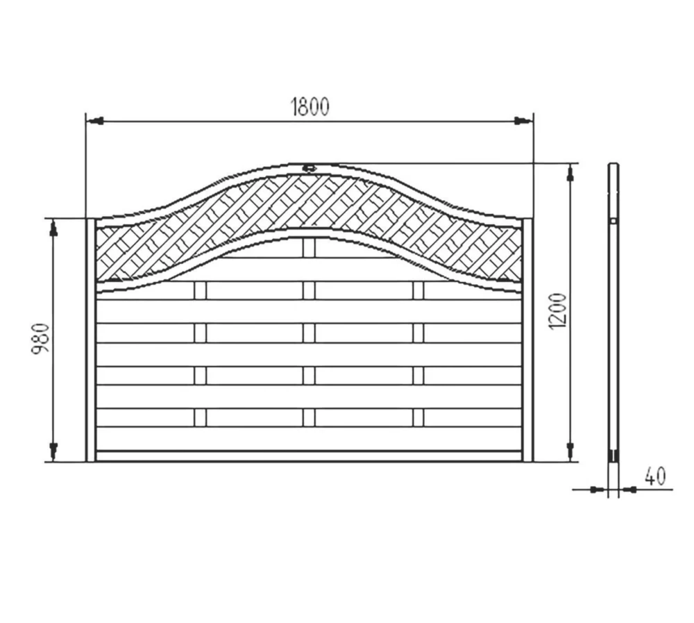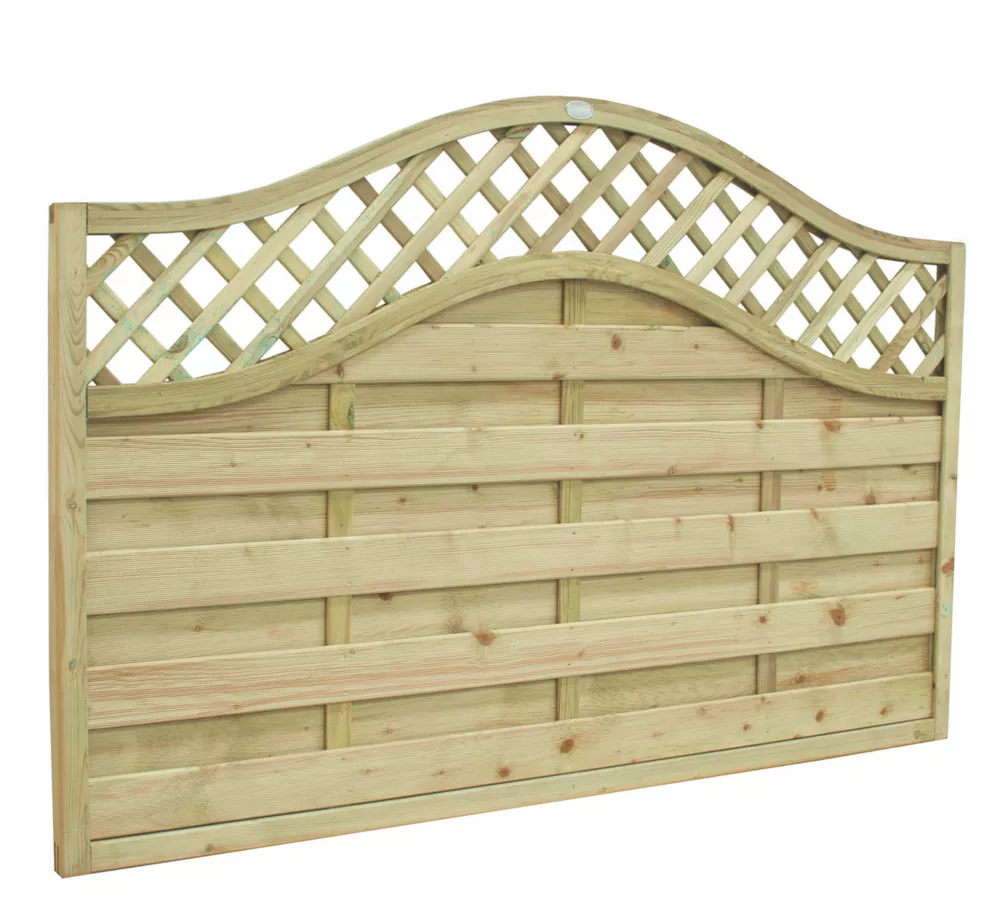 Softwood. Stylish and decorative fence panels with a curved trellis design.