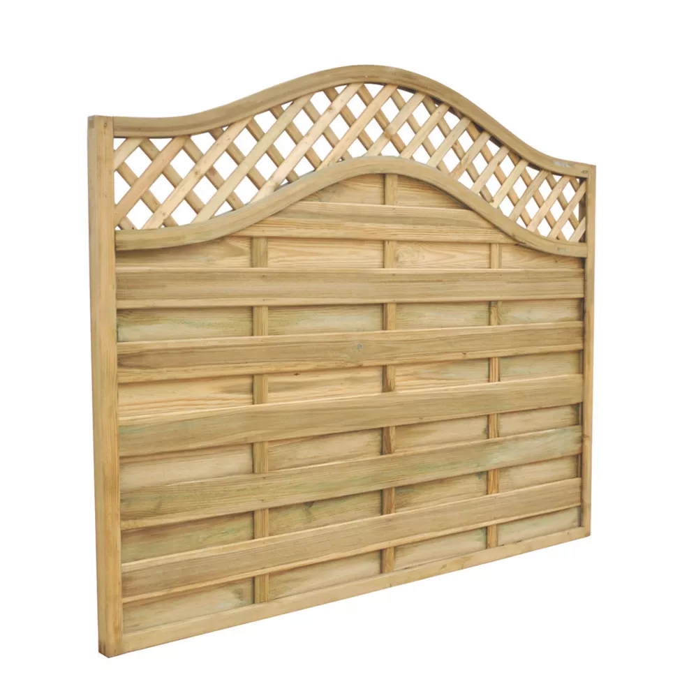 Softwood. Stylish and decorative fence panels with a curved trellis design.