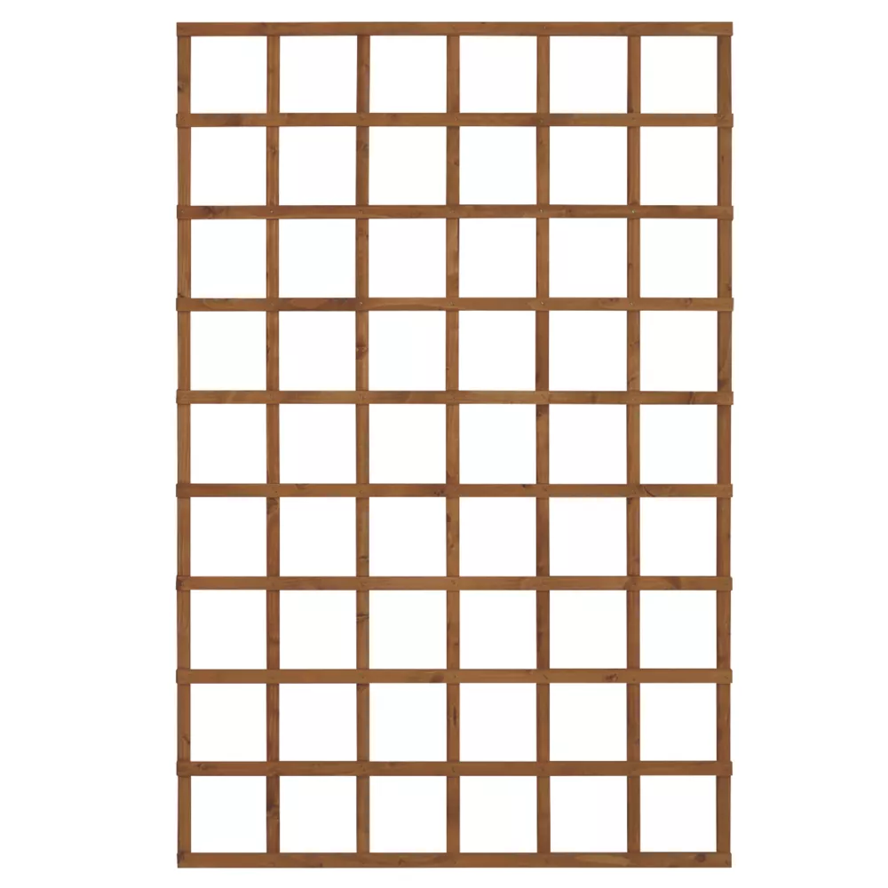 Traditional, smooth-planed square trellis with 15mm thick by 30mm wide battens which give plenty of room for climbing plants to weave between. Dip-treated with a preservative to protect it from rot and give it a golden brown colour. Suitable for mounting to a wall or fence to create a feature and train climbing plants.
