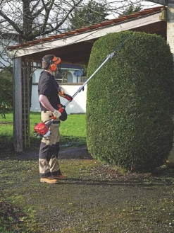 Versatile petrol multi-tool with attachments for grass trimming, brushcutting, hedge cutting and pruning. Includes 70cm extension pole, providing extra reach for low hanging branches and tall hedges. Straight and jointed shaft. Supplied with a maintenance tool kit.