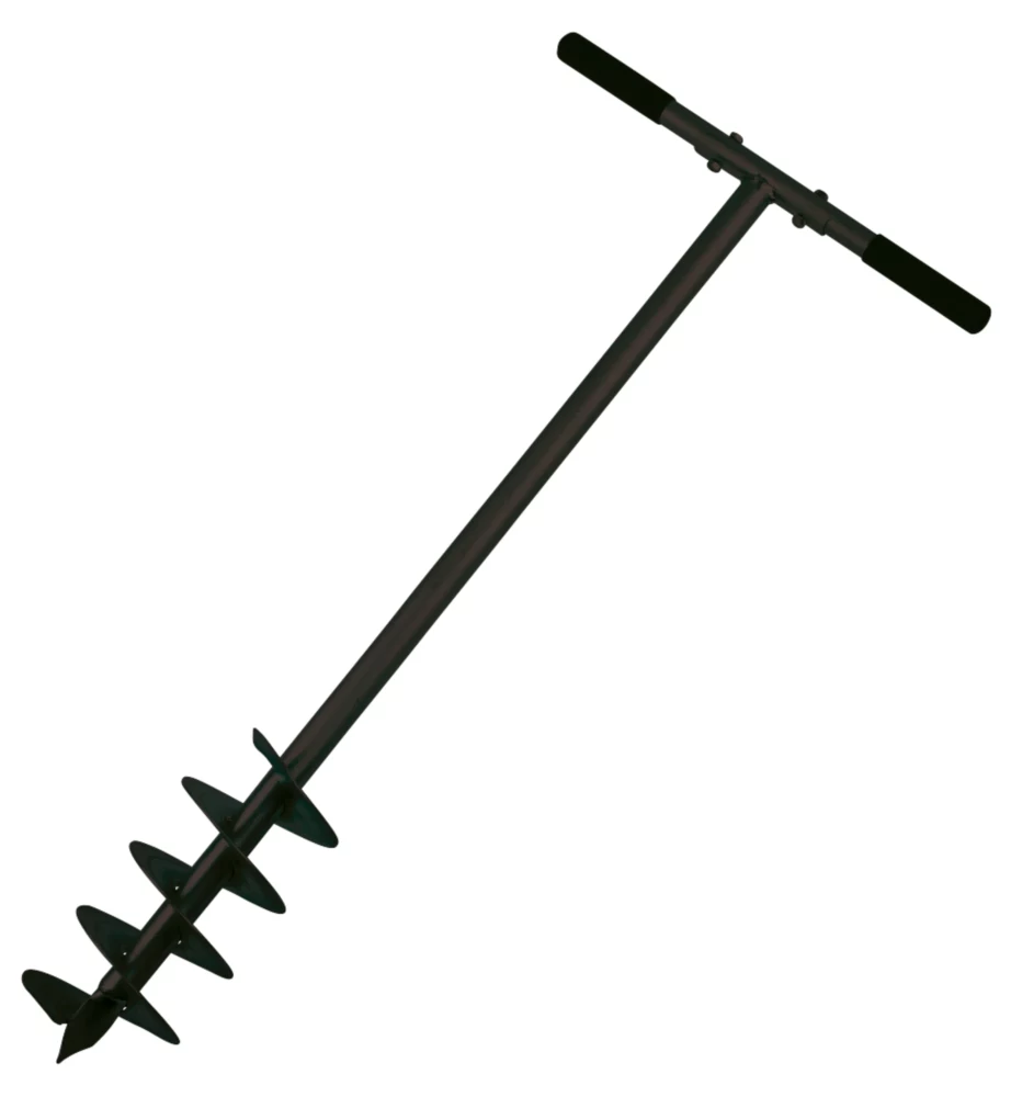 150mm (6″) blade. Can be used in most soil types. Great for round and square posts. Black powder-coated steel construction.