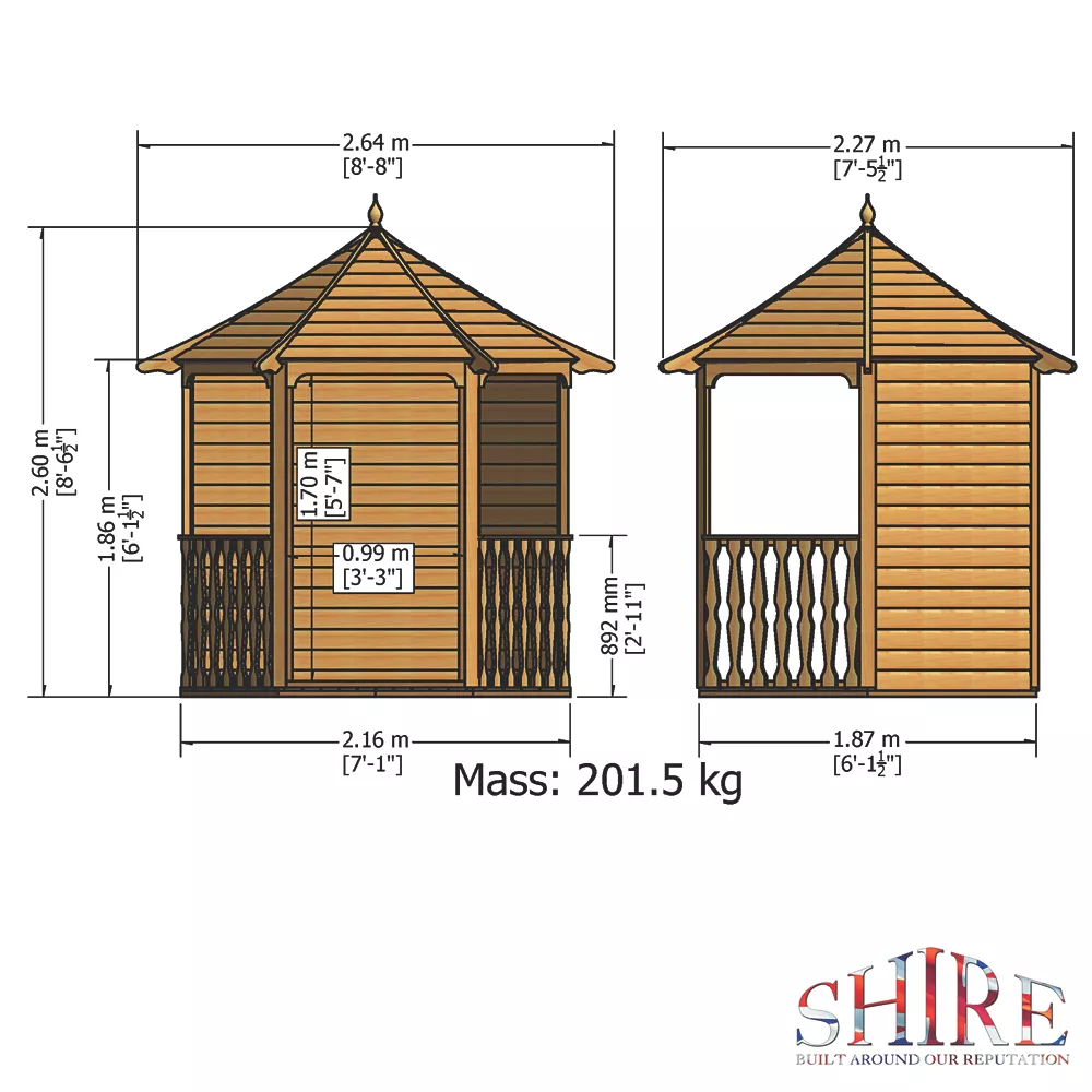 Arbour with tongue and groove profiled roof and pressure-treated timber. Supplied with shaped roof supports and floor. All necessary hardware included for easy to follow self-assembly.