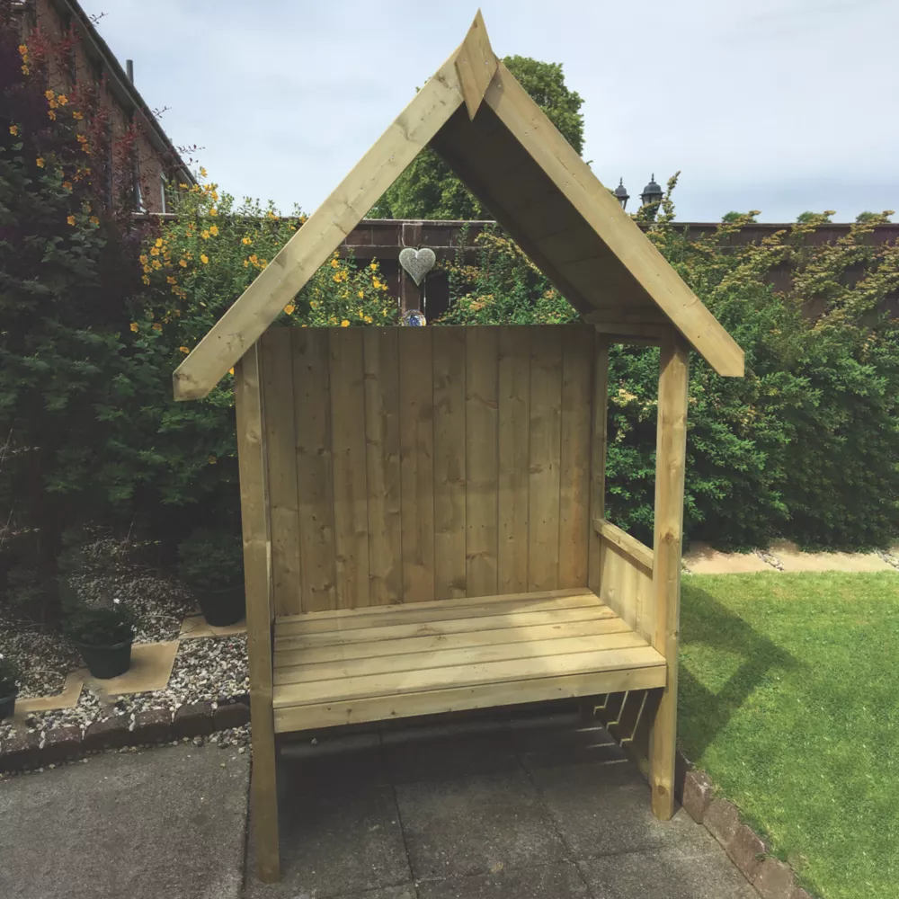 The clean lines of this durable arbour make a pleasant protected seat. Constructed using premium selected kiln-dried slow-grown timbers. Timbers are cut and shaped prior to pressure treatment therefore giving maximum protection. Can be painted or stained if desired.