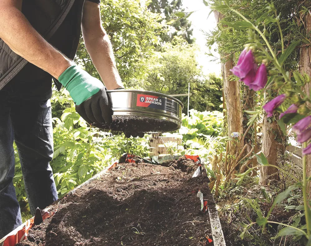 Durable chrome-plated steel frame with 10mm square baseplate holes. Ideal for sifting soil and removing stones, rocks and sticks.