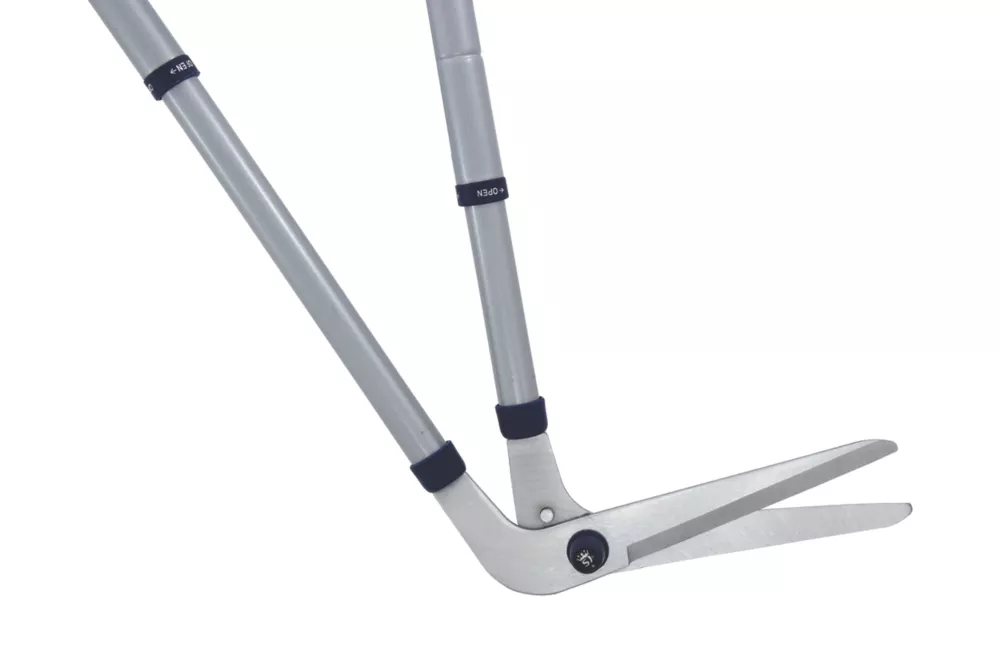 Tubular steel handles with soft-feel grips for maximum strength. Polished and laquered hollow-ground C50 carbon steel blades for rust resistance and lasting sharpness. Extends up to 1.13m.