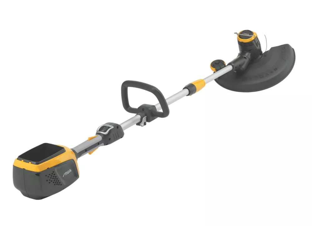 With one quick twist, adjustable cutting head rotates to switch easily between trimming and edging functions. Front handle and telescopic shaft also adjust, offering comfortable working position. Features high-performance, auto-feeding double nylon line and shaft that breaks down into 2 parts for space-saving storage. Wearing of a face visor and protective clothing for legs is recommended when using this tool.