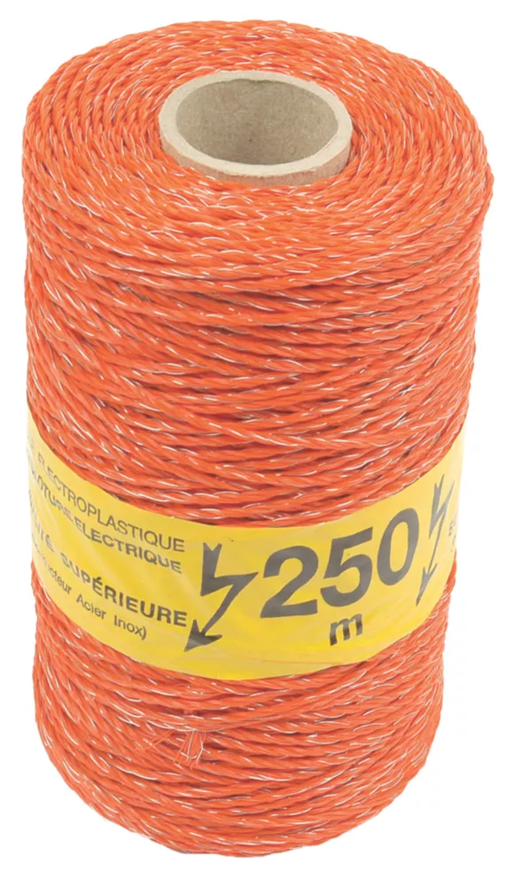 Quality polywire for electric fencing. Polypropylene construction with 3 steel conductors.