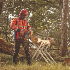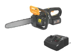 Titan brushless chainsaw with Oregon chain and chain bar. Features anti-kick-back function for user safety and SDS system for tool-free bar assembly and chain tension adjustment.